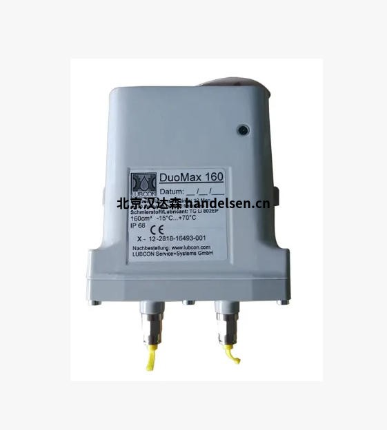 Lubcon潤滑裝置DuoMax 160:雙點潤滑裝置,用于電機的長期潤滑。鋁壓鑄機身包含兩個密封且未加壓的墨盒,填充有 160cm³ 潤滑劑,可同時為兩個潤滑點自動加注潤滑脂或潤滑油。